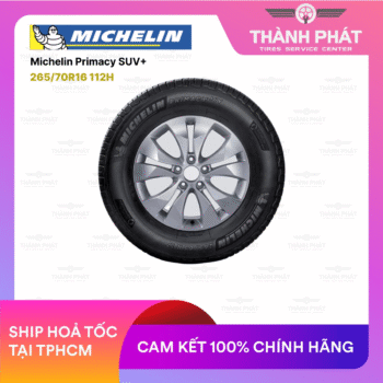 Lốp xe Michelin 265/70R16 112H Primacy SUV+ – dòng lốp touring cao cấp dành cho SUV cỡ trung và SUV đô thị, nổi bật với độ êm ái vượt trội, khả năng bám đường ổn định và độ bền cao trong điều kiện khí hậu nhiệt đới. Lựa chọn lý tưởng cho Toyota Fortuner, Ford Everest, Hyundai SantaFe, Mitsubishi Pajero Sport và Isuzu MU-X.