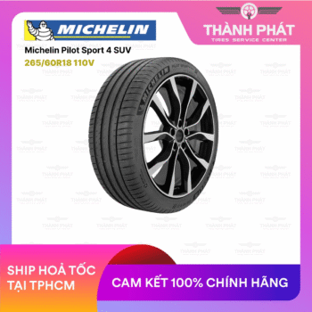 Lốp xe Michelin 265/60R18 110V Pilot Sport 4 SUV là dòng lốp hiệu suất cao (High Performance SUV Tire) được phát triển dành riêng cho SUV và CUV cao cấp, mang lại độ bám đường vượt trội, phản hồi lái chính xác và cảm giác lái thể thao đẳng cấp. Sản phẩm phù hợp cho các dòng xe như Toyota Fortuner, Ford Everest, Mazda CX-9, Kia Sorento, Hyundai SantaFe.