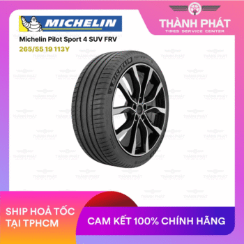 Lốp xe Michelin 265/55R19 113Y Pilot Sport 4 SUV FRV là dòng lốp hiệu suất cao (High Performance SUV Tire) dành riêng cho SUV và CUV hạng sang, nổi bật với khả năng bám đường vượt trội, phản hồi lái chính xác và độ ổn định tối đa ở tốc độ cao. Ứng dụng công nghệ Dynamic Response độc quyền của Michelin, giúp kiểm soát an toàn, tăng độ bền và cảm giác lái thể thao đẳng cấp. Phù hợp cho các dòng Mercedes-Benz GLE, BMW X5, Audi Q7, Lexus RX, Porsche Cayenne.