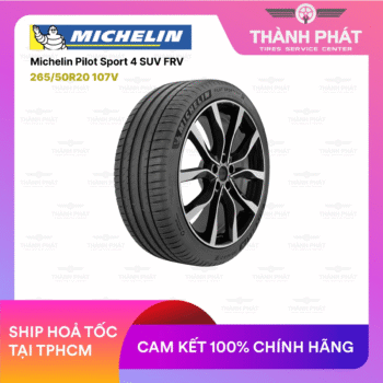 Lốp xe Michelin 265/50R20 107V Pilot Sport 4 SUV FRV là dòng lốp hiệu suất cao (High Performance SUV Tire) dành cho SUV và Crossover hạng sang, nổi bật với độ bám vượt trội, phanh an toàn và khả năng điều khiển chính xác. Ứng dụng công nghệ Dynamic Response™ giúp phản hồi lái nhanh, ổn định ở tốc độ cao và tăng độ bền vượt trội. Ký hiệu FRV (Full Rim Protector Version) giúp bảo vệ mâm xe khỏi trầy xước và va chạm nhẹ. Phù hợp cho các dòng BMW X5, Mercedes-Benz GLE, Audi Q8, Lexus RX, Volvo XC90.