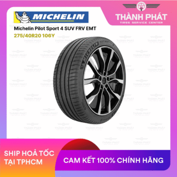 Lốp xe Michelin 275/40R20 106Y () Pilot Sport 4 SUV FRV EMT** là dòng lốp hiệu suất cao (High Performance SUV Tire) được phát triển dành cho SUV và Crossover hạng sang, nổi bật với độ bám đường xuất sắc, phanh an toàn và phản hồi lái chính xác. Ứng dụng công nghệ EMT (Extended Mobility Tire) cho phép di chuyển an toàn khi lốp bị thủng, cùng thiết kế FRV (Full Rim Protector Version) giúp bảo vệ mâm xe hiệu quả. Phiên bản ()** đạt chuẩn BMW Original Equipment (OE)** – phát triển dành riêng cho các dòng BMW X5, X6 và X7.