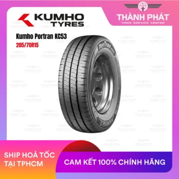Lốp Kumho 215/70R15 PorTran KC53 – dòng lốp tải nhẹ – xe thương mại – siêu bền – chịu tải lớn, tối ưu cho xe vận tải – xe chở hàng – xe dịch vụ chạy liên tục. Sở hữu khả năng chịu tải vượt trội, độ bám vững, độ bền mặt gai cao và thành lốp cứng vững, phù hợp cho Toyota Hiace đời cũ, Mitsubishi L300 bản thương mại, Kia Frontier độ tải, Suzuki Carry Truck độ mâm 15, mang lại vận hành khỏe – ổn định – bền bỉ.