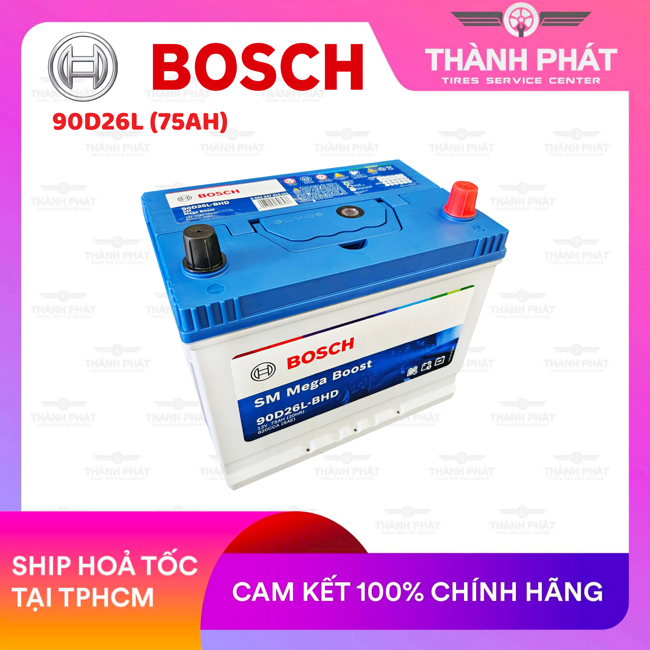Bosch là thương hiệu ắc quy uy tín đến từ Đức với hàng thập kỷ kinh nghiệm trong ngành công nghiệp ô tô và năng lượng. Dòng 90D26L 75Ah được sản xuất tại Hàn Quốc theo tiêu chuẩn chất lượng nghiêm ngặt của Bosch, đáp ứng tốt yêu cầu vận hành của những dòng xe SUV, crossover và MPV cỡ lớn.