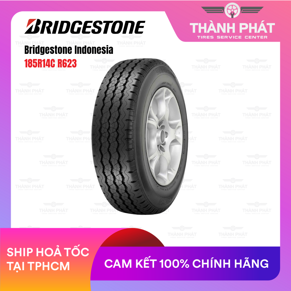 Bridgestone 185R14C Duravis R623 – Made in Indonesia – dòng lốp chuyên dụng cho xe tải nhẹ, siêu bền, chịu tải tốt, tiết kiệm chi phí. Thiết kế gai chắc chắn, chống mài mòn, bám đường ổn định. Phù hợp cho Hyundai Porter, Kia Frontier, Suzuki Carry.