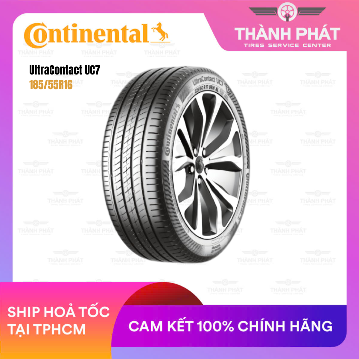 Về thương mại: Là dòng lốp chính hãng Continental – Đức, UltraContact UC7 được bảo hành 5 năm, kèm dịch vụ hậu mãi tận tâm tại hệ thống B-Select Thành Phát, đảm bảo uy tín, chất lượng và sự an tâm tuyệt đối.