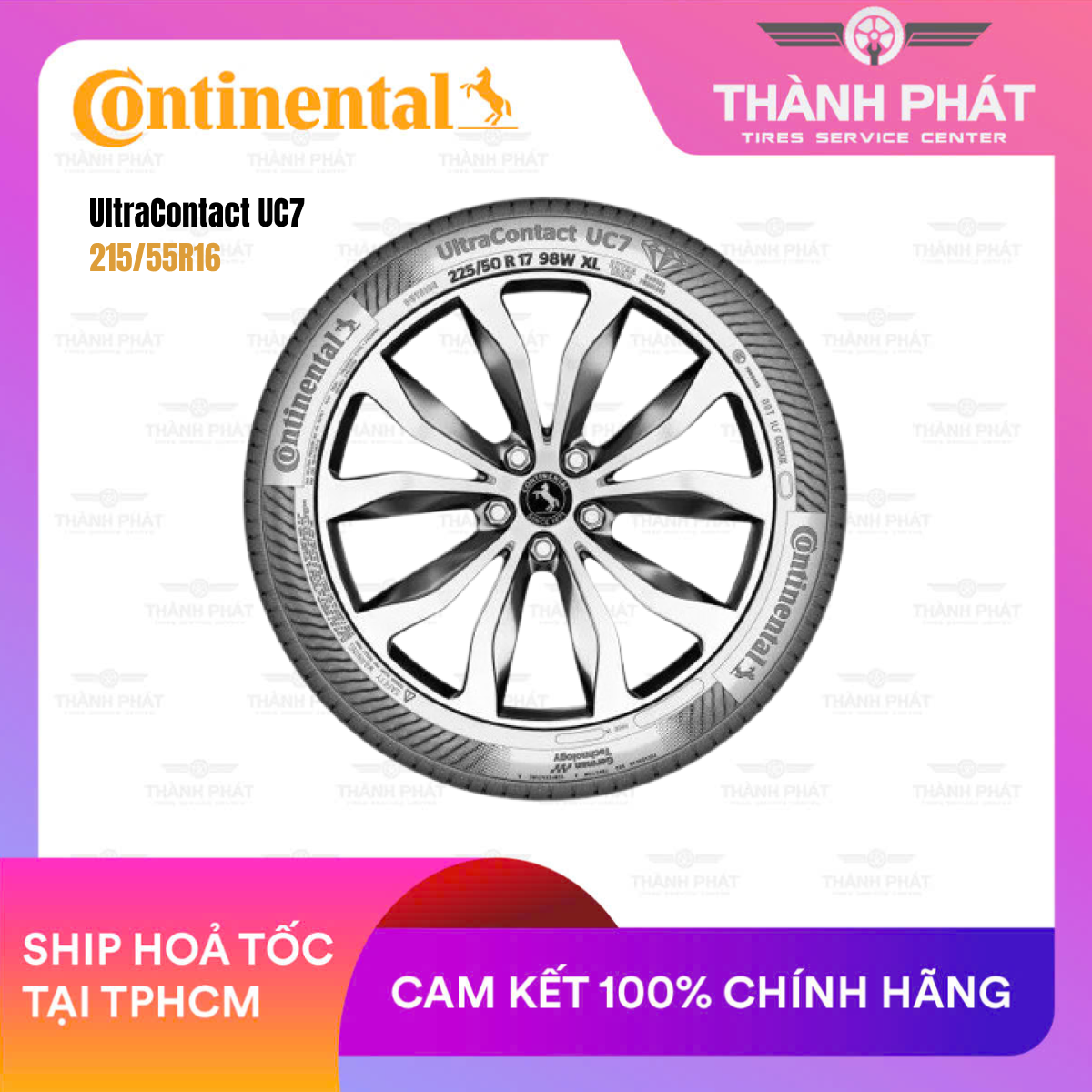 Về thương mại: Là dòng lốp chính hãng Continental – Đức, UltraContact UC7 được bảo hành 5 năm, kèm dịch vụ hậu mãi tận tâm tại hệ thống B-Select Thành Phát, đảm bảo uy tín, chất lượng và sự an tâm tuyệt đối.