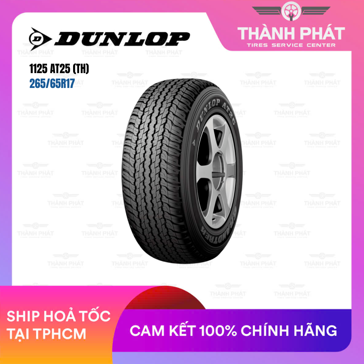 Lốp 265/65R17 112T được sản xuất tại nhà máy Dunlop Thái Lan, đạt tiêu chuẩn quốc tế về chất lượng, độ bền và khả năng kiểm soát.