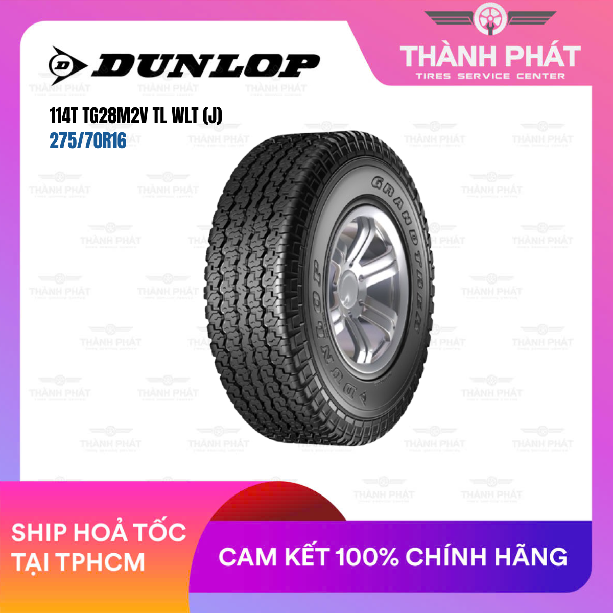 Lốp Dunlop Grandtrek TG28M2V 275/70R16 114T phù hợp cho xe bán tải và SUV địa hình cỡ lớn, mang lại hiệu suất vượt trội trên cả đường nhựa lẫn địa hình gồ ghề.