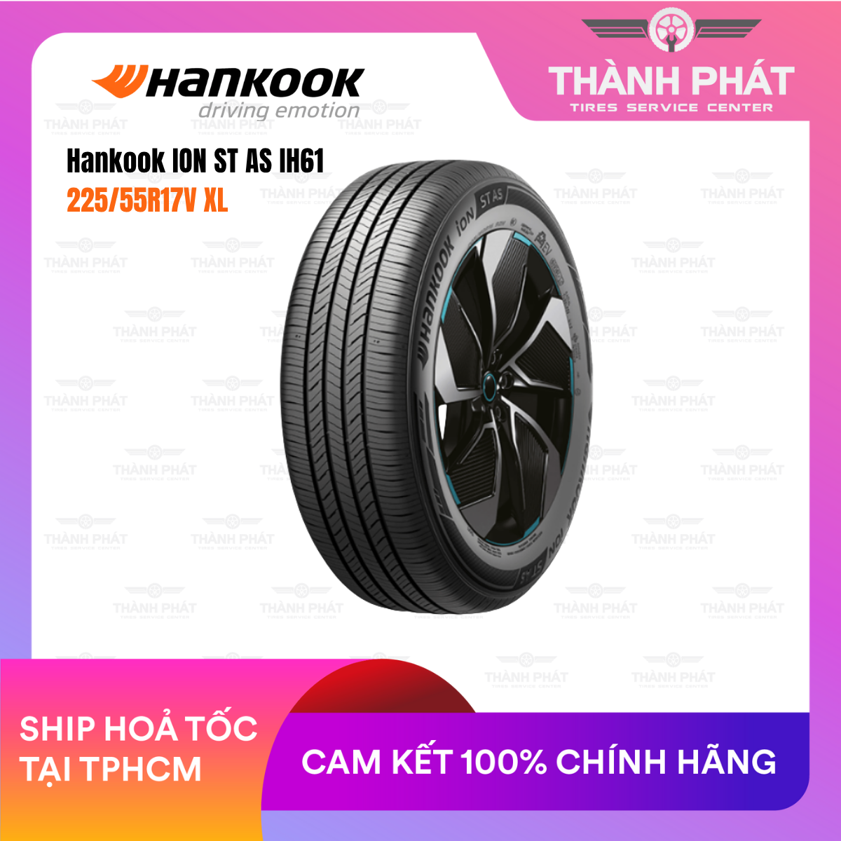 Hankook Tirethương hiệu lốp hàng đầu Hàn Quốc, tiên phong trong việc phát triển lốp chuyên dụng cho xe điện (EV tires). Dòng ION ST AS IH61 thuộc thế hệ lốp Hankook ION, được tối ưu cho mô-men xoắn cao, khả năng tăng tốc tức thì và trọng lượng đặc trưng của xe điện.