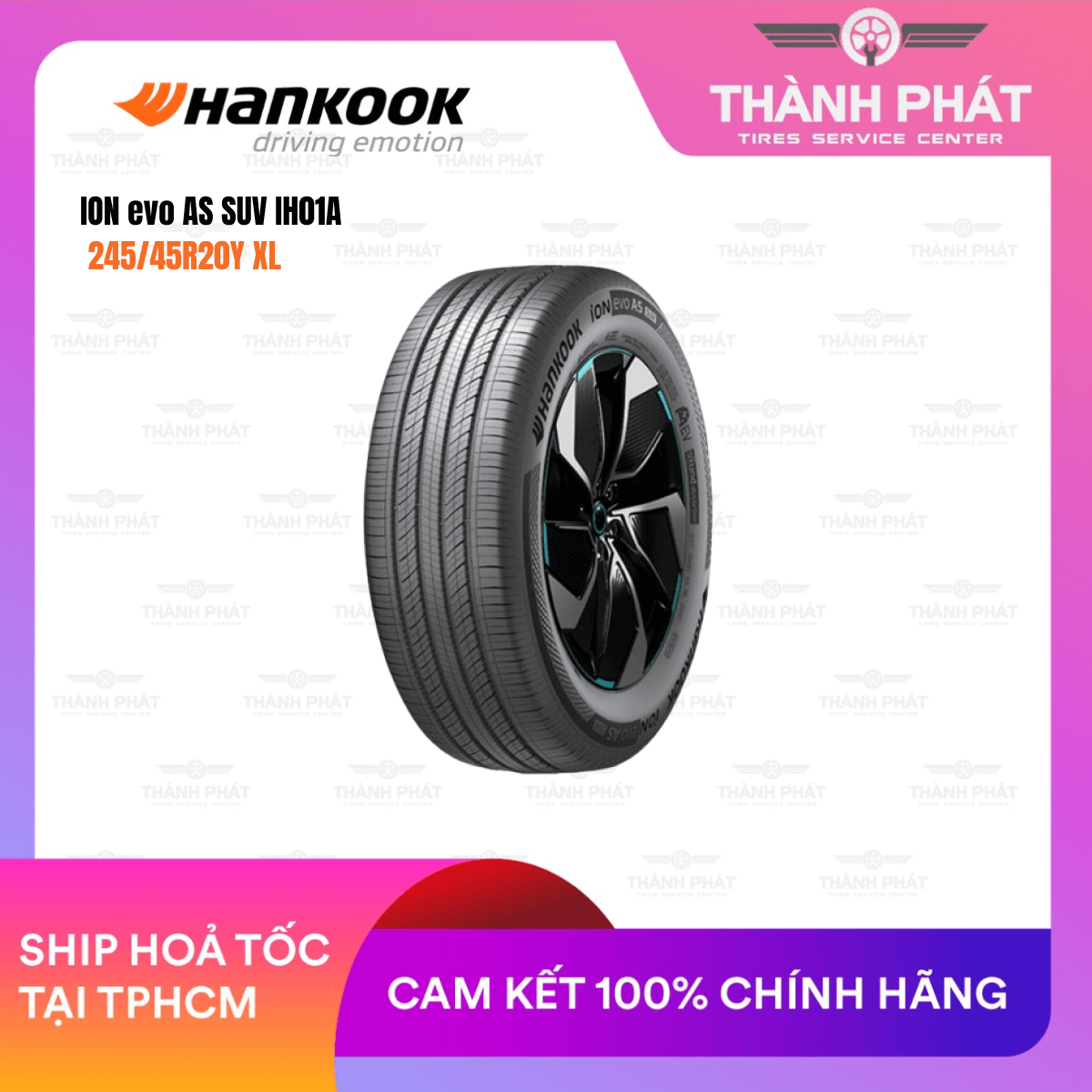 Sản phẩm chính hãng Hankook, bảo hành 5 năm, hỗ trợ đổi mới nếu lỗi kỹ thuật. Với chất lượng toàn cầu, độ êm và khả năng tiết kiệm năng lượng xuất sắc, ION evo AS SUV IH01A là dòng lốp tiêu chuẩn cho xe điện hiện đại – bền bỉ, an toàn và tối ưu năng lượng.
