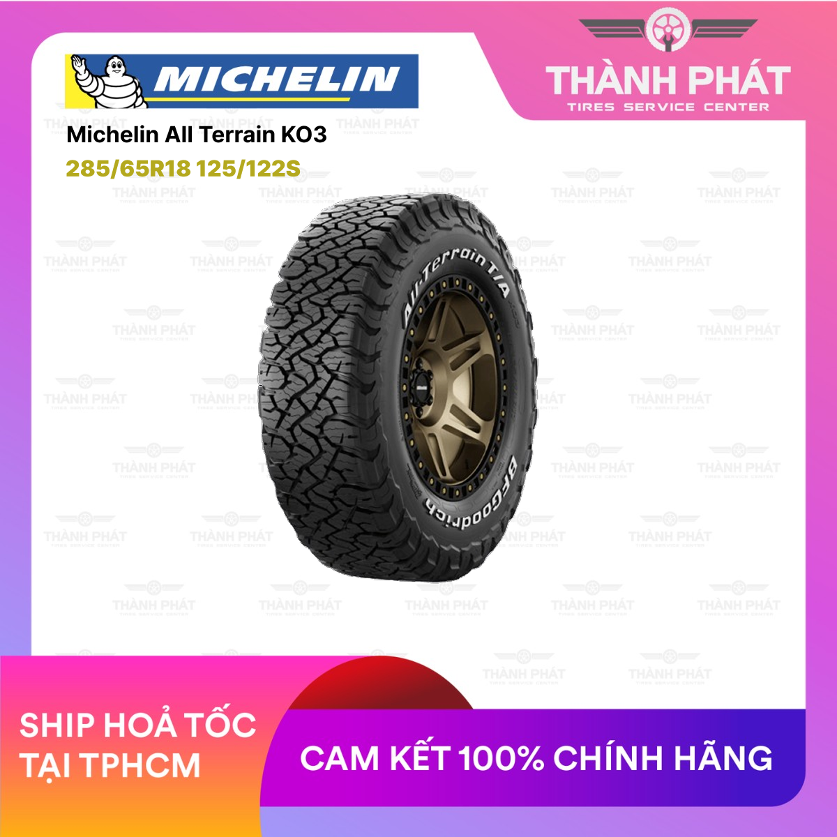 Sản phẩm được phân phối chính hãng tại Việt Nam, đi kèm bảo hành 5 nămdịch vụ hậu mãi tận tâm. BF Goodrich KO3 mang đến giá trị sử dụng bền bỉ, hiệu suất cao và phong cách off-road đậm chất Mỹ, khác biệt hoàn toàn so với các dòng lốp touring thông thường.