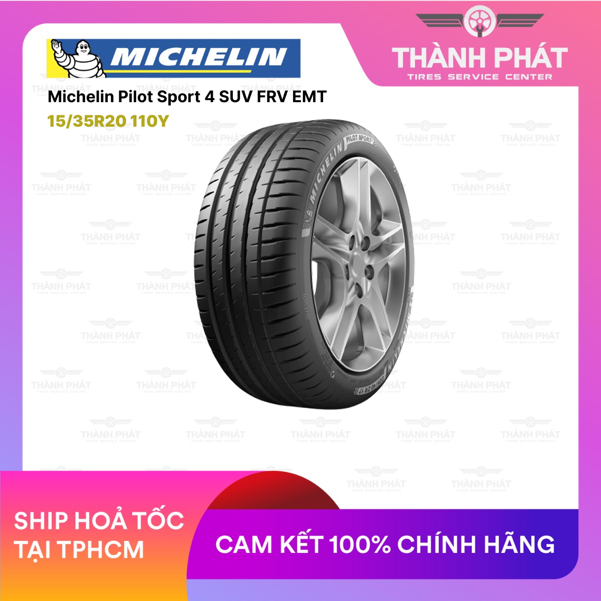Lốp xe Michelin 315/35R20 110Y () Pilot Sport 4 SUV FRV EMT** là dòng lốp thể thao hiệu năng cao (High Performance SUV Tire) được phát triển dành riêng cho SUV và Crossover hạng sang của BMW (ký hiệu **), nổi bật với khả năng bám đường tối đa, phản hồi lái nhanh nhạy và độ ổn định tuyệt đối ở tốc độ cao. Ứng dụng công nghệ EMT (Extended Mobility Tire) giúp xe vẫn di chuyển an toàn khi lốp bị thủng, kết hợp thiết kế FRV (Full Rim Protector Version) giúp bảo vệ mâm xe khỏi trầy xước. Phù hợp cho các dòng BMW X5, X6, X7 và các SUV hiệu năng cao khác.